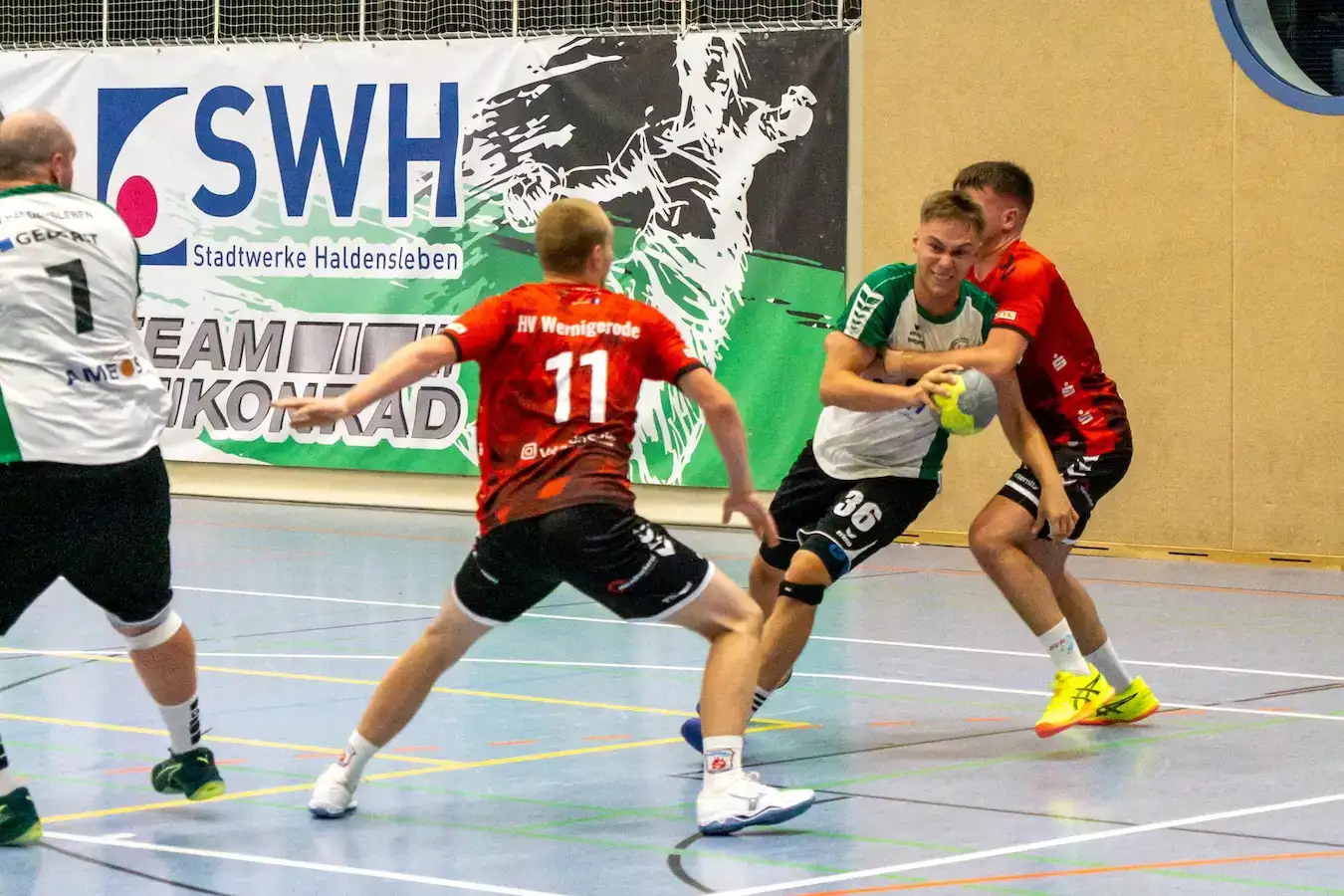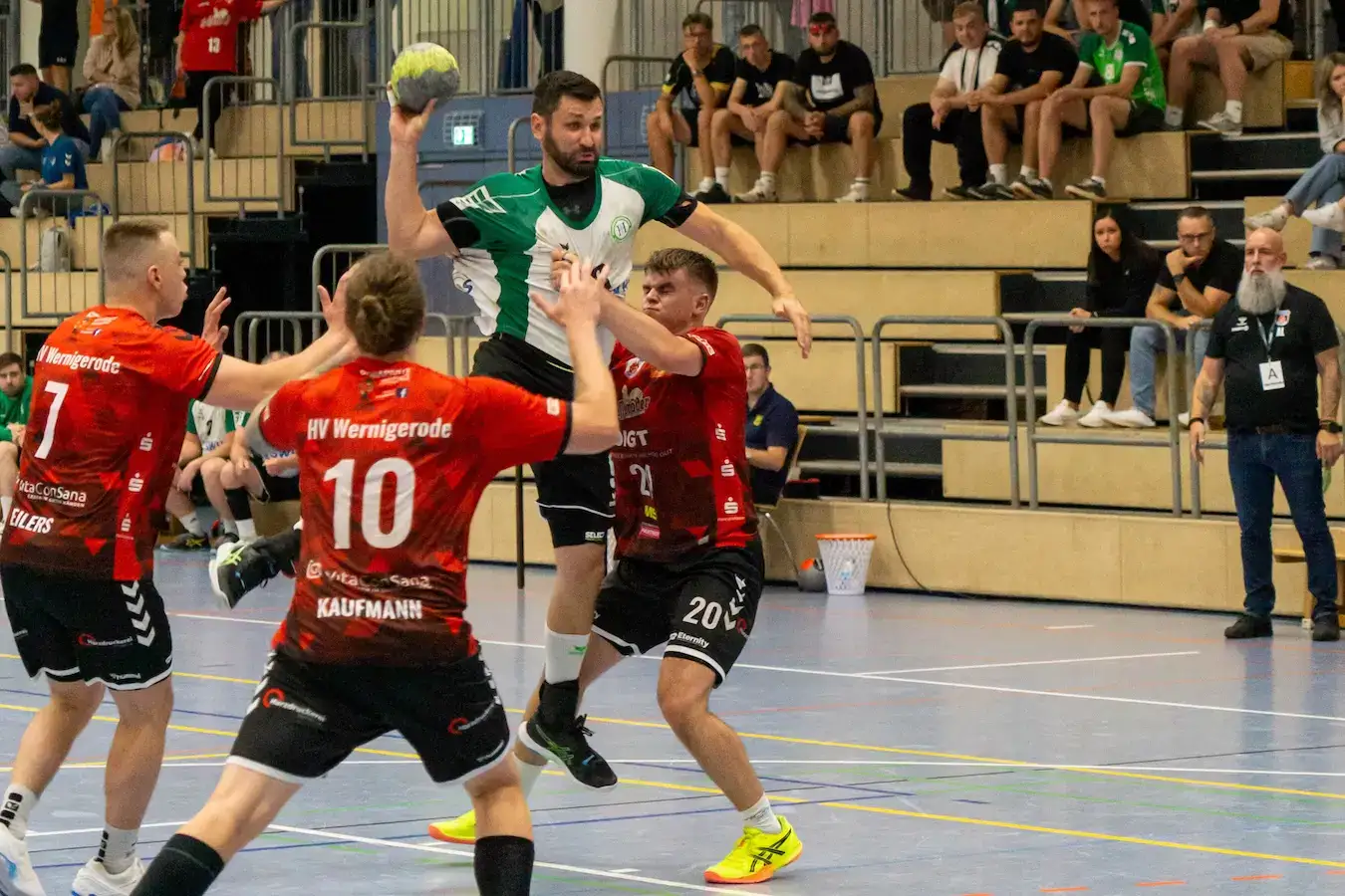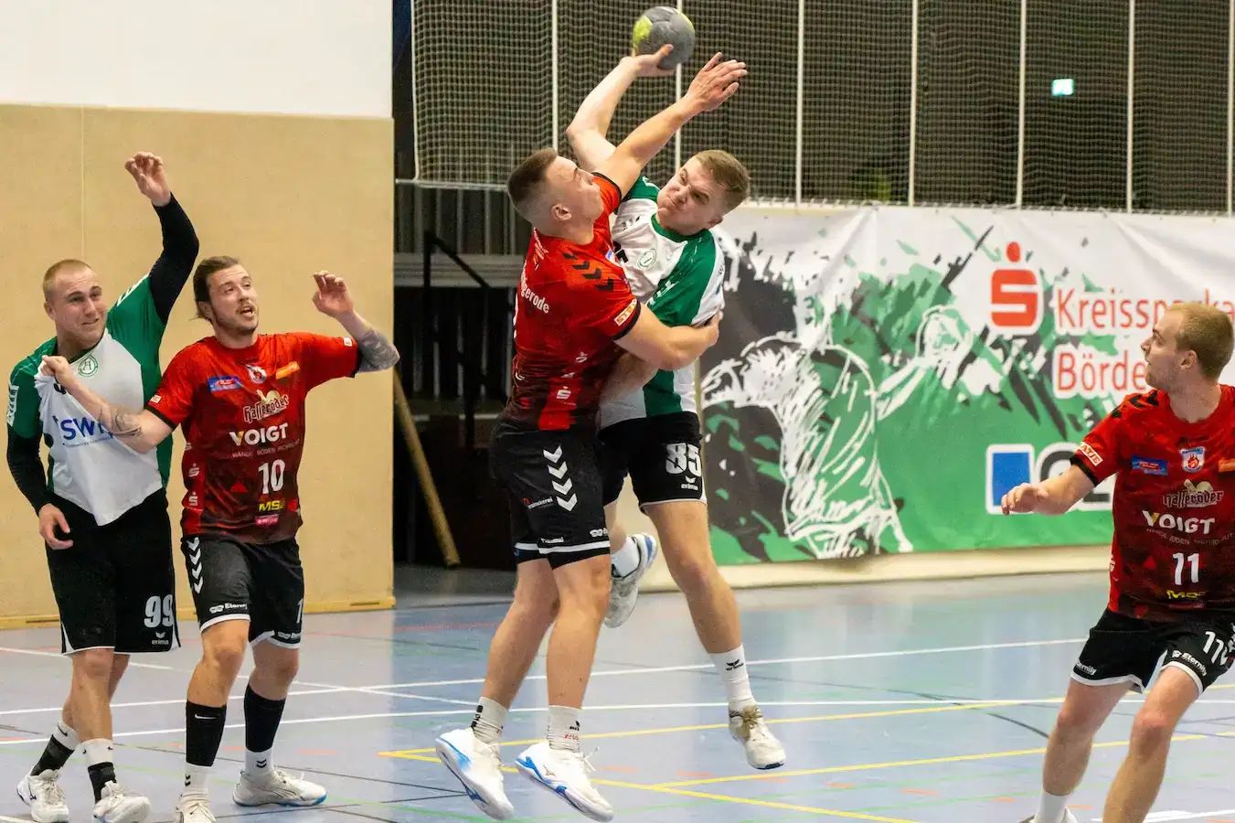 Von der ersten Minute an entwickelte sich eine Partie auf Augenhöhe. Die Haldensleber Abwehr arbeitete äußerst konzentriert, verschob kompakt und zwang die Gäste zu schwierigen Würfen. Vor allem Keeper Christoph Strauß konnte sich mehrfach auszeichnen. Doch während die Defensive überzeugte, zeigte der Angriff noch große Schwächen. Unsaubere Pässe, überhastete Abschlüsse und kleine technische Fehler verhinderten, dass der HSV sich absetzen konnte. So wechselte die Führung mehrfach, ohne dass eine Mannschaft wirklich die Kontrolle übernahm. Zur Halbzeit stand ein leistungsgerechtes 12:12 auf der Anzeigetafel. Ein Ergebnis, das den Verlauf der ersten 30 Minuten perfekt widerspiegelte.