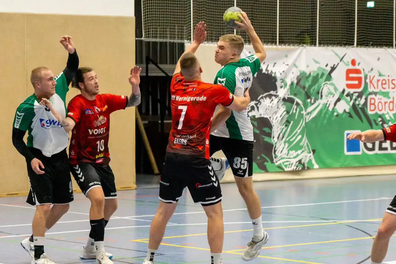 Nach der Pause kamen die Gastgeber wie verwandelt zurück aufs Feld. Mit mehr Tempo und Entschlossenheit im Angriffsspiel nutzte man die Lücken in der Wernigeröder Deckung besser aus. Besonders Hannes Kruse sorgte in dieser Phase für wichtige Treffer. In der 42. Minute leuchtete ein 20:15 auf der Anzeigetafel, die Halle stand Kopf. Doch diese komfortable Führung sollte nicht lange Bestand haben. Zunehmend schlichen sich Nervosität und Unkonzentriertheit ins Spiel der Haldensleber ein. Ballverluste und vergebene Chancen luden die Gäste förmlich ein, ins Spiel zurückzukommen. Wernigerode nahm die Geschenke dankend an, drehte noch einmal auf und arbeitete sich Tor um Tor heran.