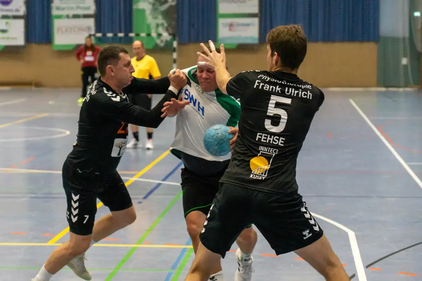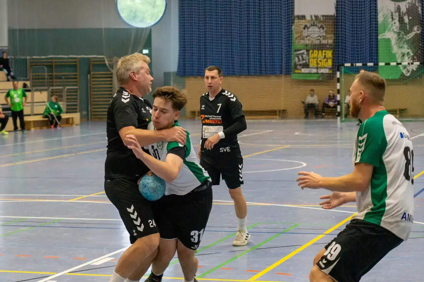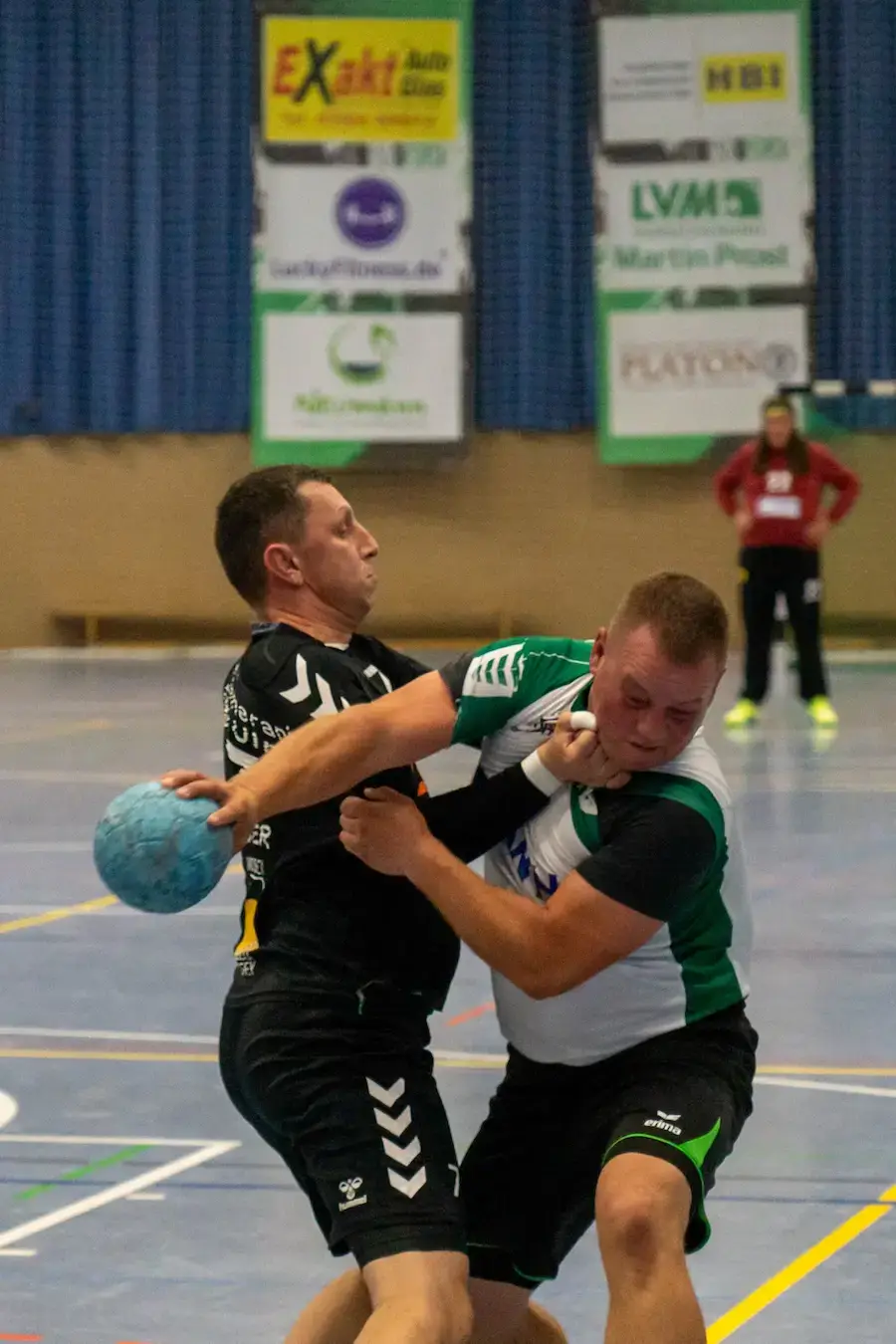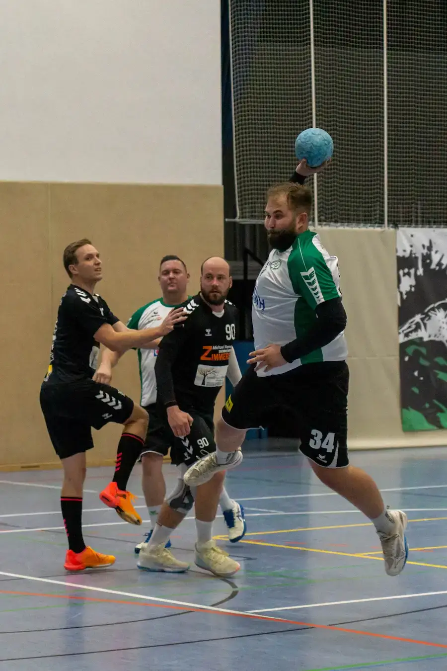 Von da an lief es besser: über Kampf und endlich auch spielerische Lösungen kamen wir Tor für Tor heran. Besonders Patrick Trültzsch wurde immer wieder auf Außen freigespielt – und wie er dann traf, war ein Schauspiel für sich. Seine Bälle flogen so langsam Richtung Tor, dass das Publikum genug Zeit hatte, sich ein Getränk zu holen und wieder zurückzukommen. Nicht einmal das Tornetz bewegte sich, so gemächlich schwebten seine Würfe ins Ziel – aber genau das machte sie unhaltbar. Während die gegnerischen Torhüter noch überlegten, ob sie lieber die Fliegen fangen oder den Ball, stand es schon +1 für uns. Eine Art Zen-Handball, bei dem Ruhe eben die größte Waffe ist.