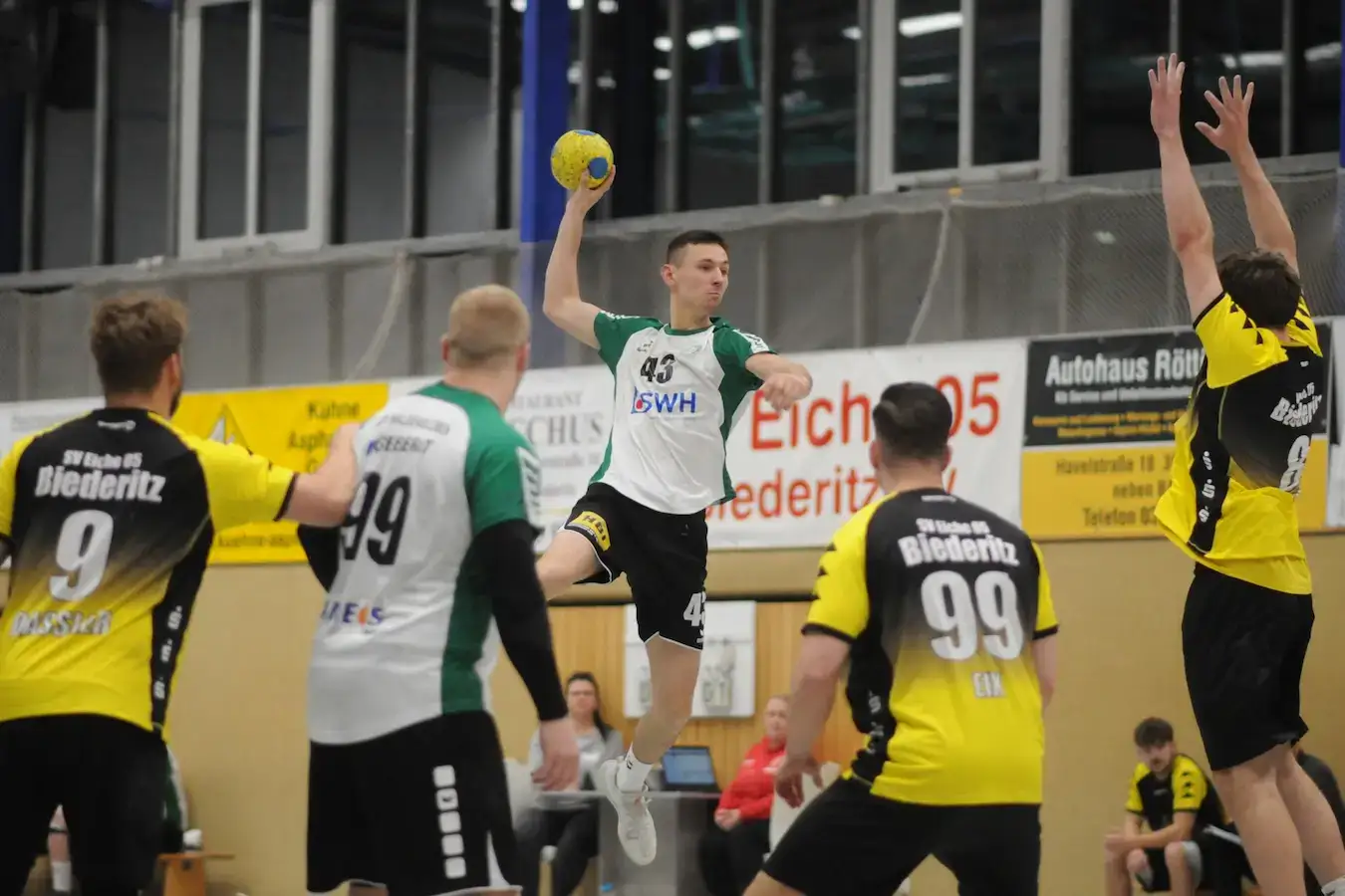 Der Start in die Partie verlief zunächst ausgeglichen. Nach dem 4:3 durch Bennet Körtge folgte jedoch eine schwache Phase der Haldensleber. In den folgenden 20 Minuten fehlten sowohl in der Abwehr als auch im Angriff Struktur und Zugriff. Fehlwürfe und Ballverluste luden die Gastgeber zu einfachen Toren ein. Auch eine frühe Auszeit brachte keine Wende, sodass Biederitz sich bis zur 25. Minute auf 17:8 absetzen konnte. Erst kurz vor der Pause stabilisierte sich der HSV wieder und verkürzte den Rückstand auf 18:12.